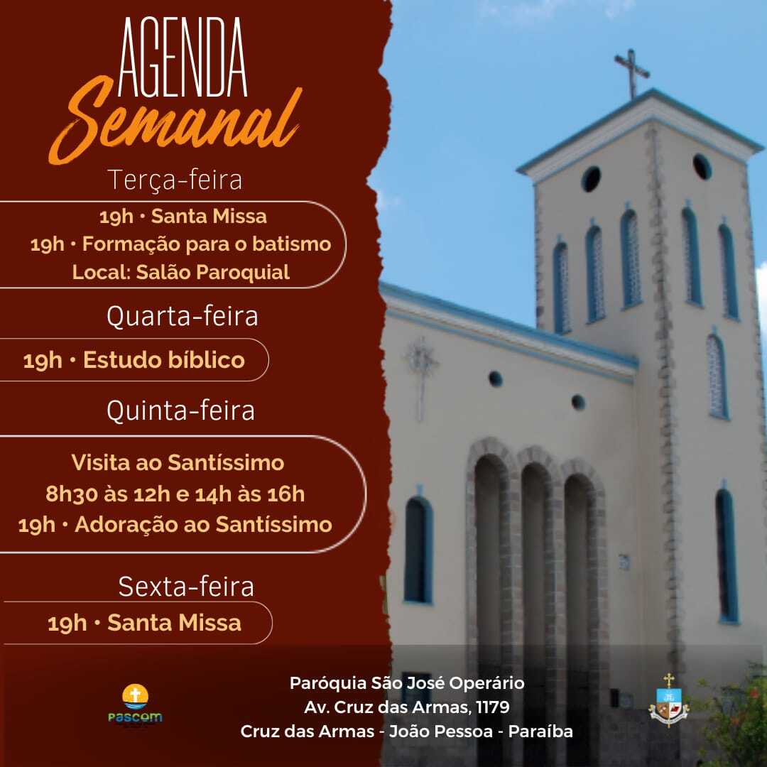 Toda semana estaremos divulgando a agenda das atividades de nossa Paróquia. Atenção coordenadores (as) de grupos, movimentos, pastorais e comunidades. Comuniquem à Pastoral da Comunicação até o sábado de cada semana suas atividades, caso tenham eventos, missas. Nesta quarta-feira (15), às 19 horas, no salão paroquial, acontece a reunião da Comissão Organizadora da Pastoral do Dízimo para planejamento da semana missionária.
