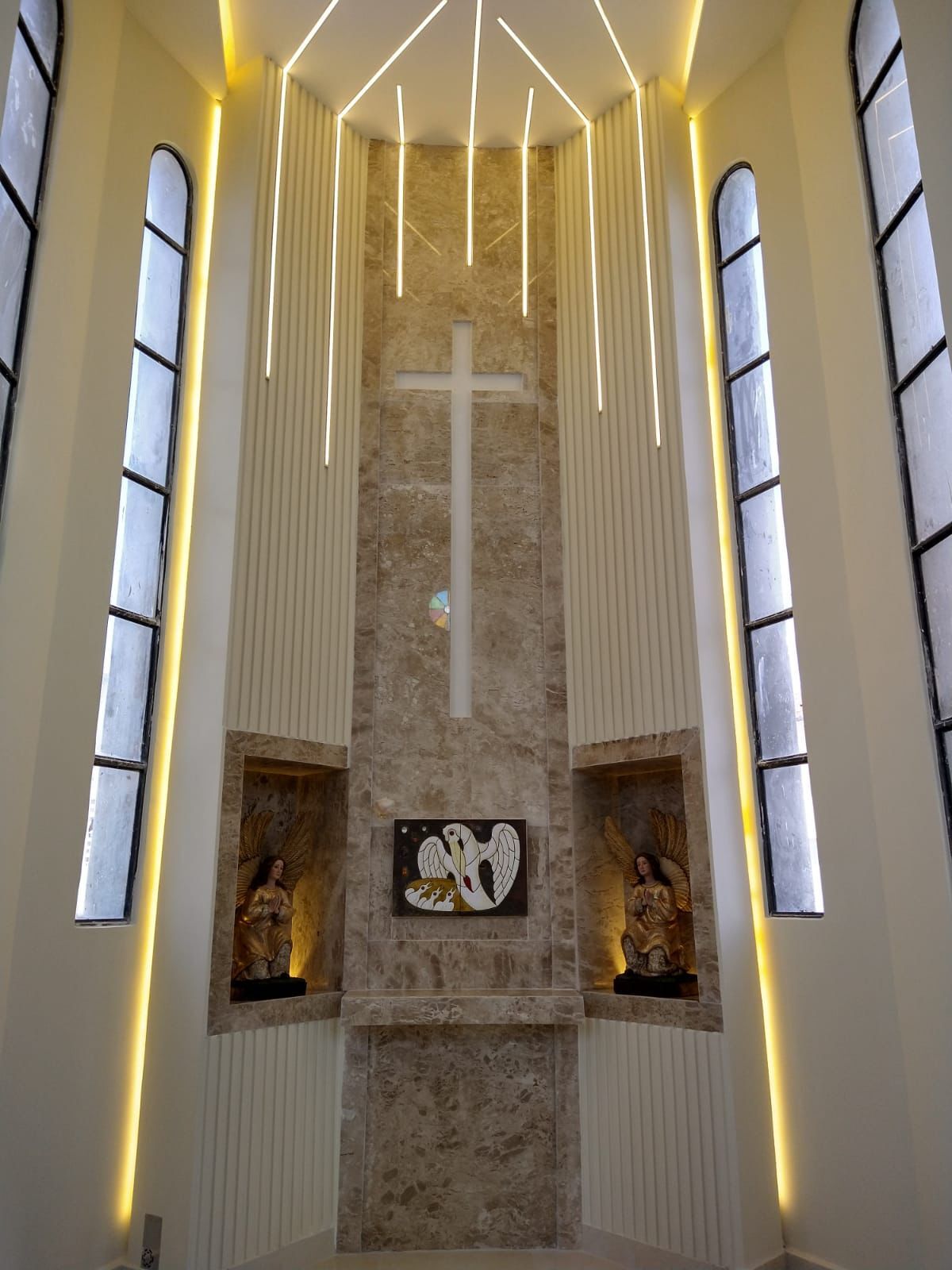 Mais um sonho realizado: a Capela do Santíssimo, da nossa Matriz está concluída. Era um sonho que eu tinha, de colocar Jesus Cristo em um lugar mais digno, bonito, que levássemos à oração. Nós paroquianos rezamos para que o projeto virasse realidade. Por Deus, na sua providência divina, começamos os trabalhos e encerramos em agosto. A arquiteta Lizieux cuidou da arte e o engenheiro Leonardo cuidou da estrutura.