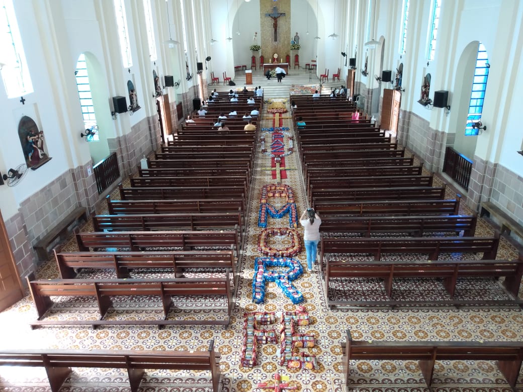 O tapete solidário está pronto na Igreja São José Operário mas as pessoas continuam doando alimentos para quem mais precisa. A doação dos alimentos será para famílias carentes do bairro de Cruz das Armas.A Igreja está aberta o dia todo. Ministros, seminaristas e paroquianos em oração. Faça uma visita, traga sua doação e agradeça a Jesus pelo milagre da vida. A missa de Corpus Christi será celebrada às 16h, presencial para quem agendou através do link no site da paróquia.